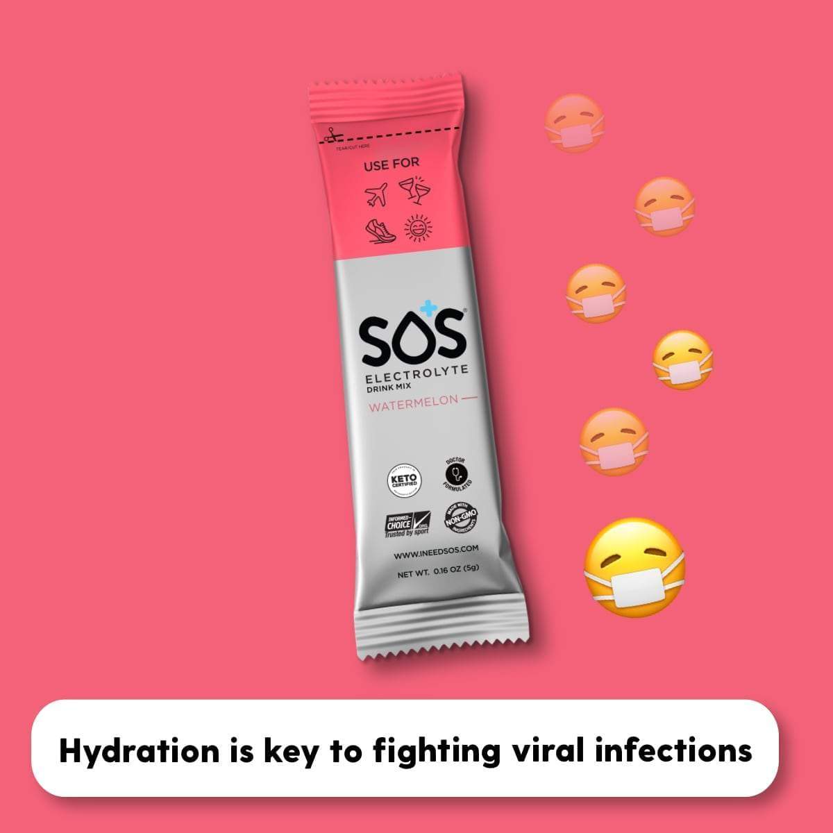 Whilst SOS is not a cure for viral illness’, maintaining proper hydration levels will help speed your recovery.